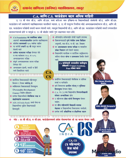 The syllabus of the foundation course has been divided systematically into two years i.e. in their 11th and 12th on the basis of comprehensibility of the students. Specific focus will be on the weaker areas of students such as Economics, Accounting, verbal as well as nonverbal. These specialised batches are conducted by expert and experienced faculties .Various experts from different fields will be called upon to guide our students so they could develop a practical outlook towards the learning process.